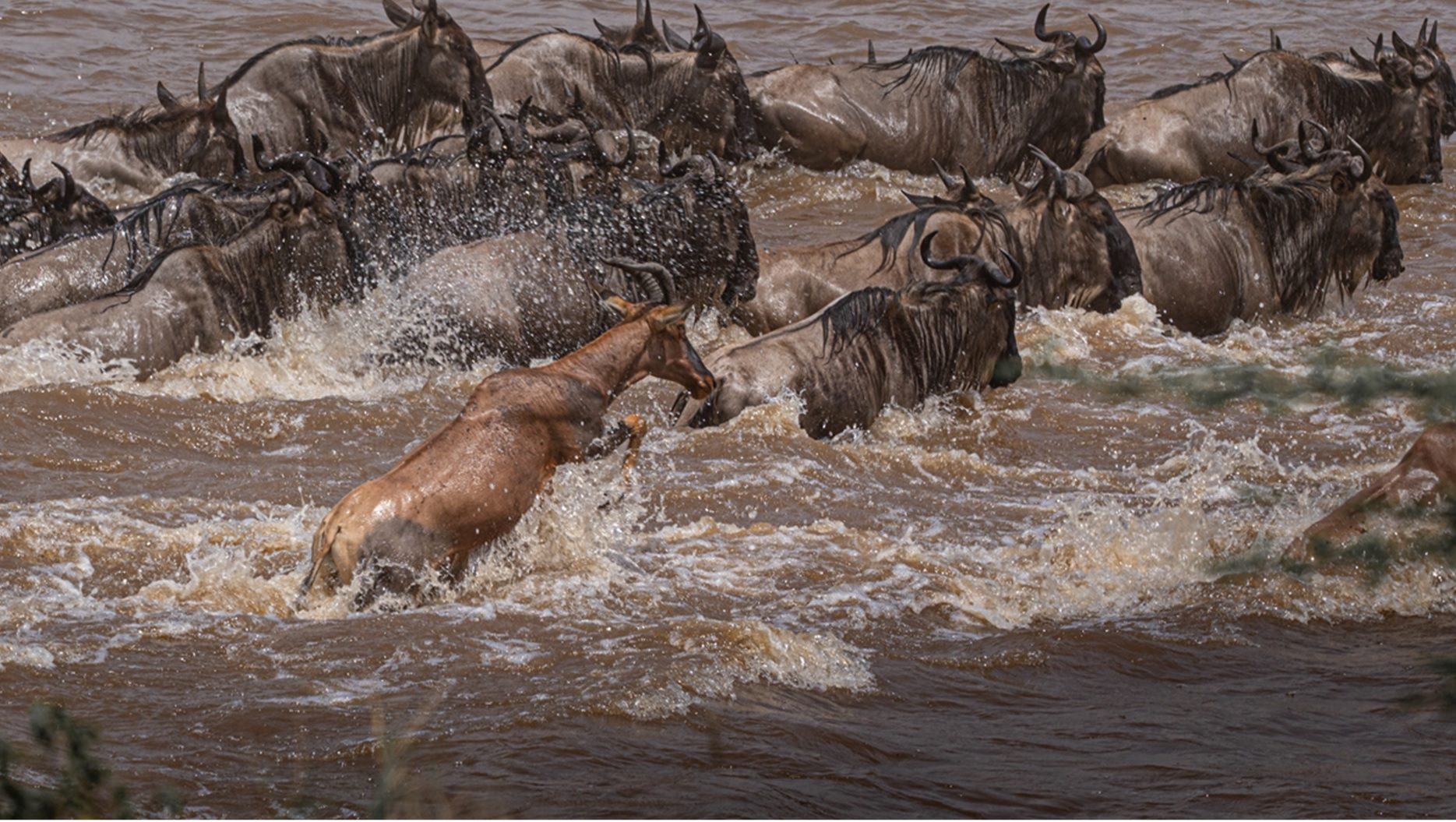 Continuing the journey south into the legendary lands of the Masai Mara and Serengeti, travelers enter the domain of the great predators and the awe-inspiring wildebeest migration. In the private Nabosho Conservancy, once the stage for “Big Cat Diaries,” lions and cheetahs prowl in near silence, offering intimate encounters far from the crowds. In the Masai Mara and Northern Serengeti, thundering herds of wildebeest cross the Mara River in dramatic displays of survival, while the Central Serengeti reveals the stealth and power of leopards and lions in action. The final stop at Amboseli National Park offers a poetic end to the safari—massive elephant herds amble gracefully beneath the towering presence of snow-capped Mount Kilimanjaro, a timeless image of Africa’s majestic beauty.