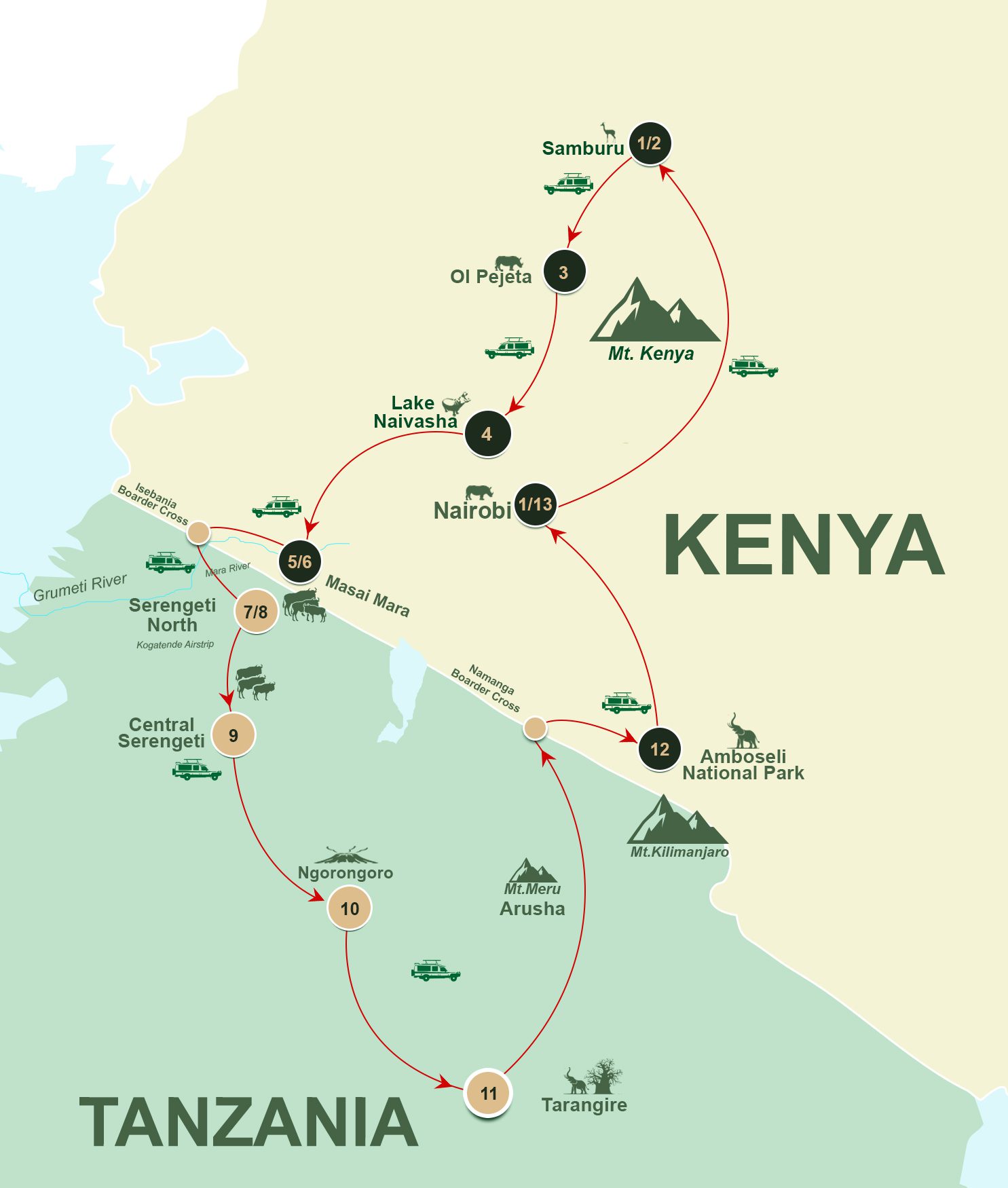 This unforgettable cross-border journey takes you from the sweeping savannas of Kenya’s Buffalo Springs and Masai Mara to Tanzania’s legendary Serengeti and Ngorongoro Crater, culminating in Amboseli’s elephant paradise beneath Mount Kilimanjaro. Track the Big Five, witness the drama of the Great Migration; one of nature’s most incredible spectacles and undoubtedly one of the best wildlife and photographic experiences, and immerse yourself in Maasai culture as you traverse diverse landscapes—from acacia-dotted plains to volcanic calderas. Each day brings new thrills: sunrise game drives, picnic lunches in the wild, and nights under star-studded skies in luxury camps and lodges. Whether you’re marveling at lions on the hunt, elephant herds at sunset, or the snow-capped peak of Kilimanjaro, this safari blends adrenaline, culture, and breathtaking beauty into one seamless adventure.