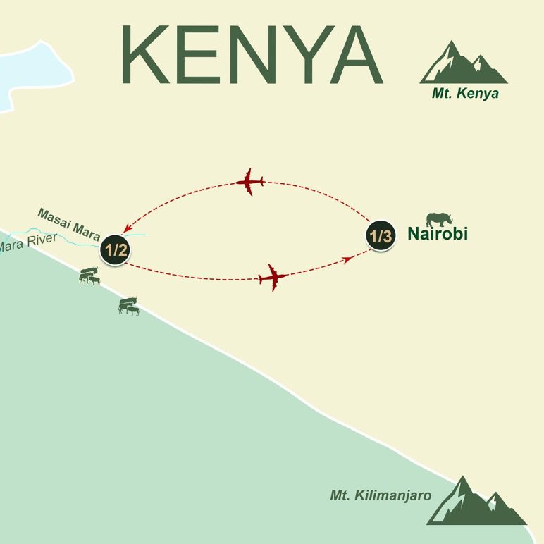 Your adventure begins with a scenic flight from Nairobi to the Masai Mara, where you’ll be met by expert guides from Rekero Camp. Spend three nights exploring the vast savannah on morning and afternoon game drives, following the movement of the Great Migration and the predators that accompany it. Optional experiences such as a hot-air balloon safari or a Maasai cultural visit add a deeper connection to the land and its people. Between adventures, relax in your luxurious tent overlooking the Talek River, enjoy gourmet bush meals and unwind under starlit skies. This short yet immersive safari combines elegance, comfort, and thrilling wildlife moments—perfect for travelers seeking an intimate encounter with the wild beauty of Kenya’s Masai Mara.