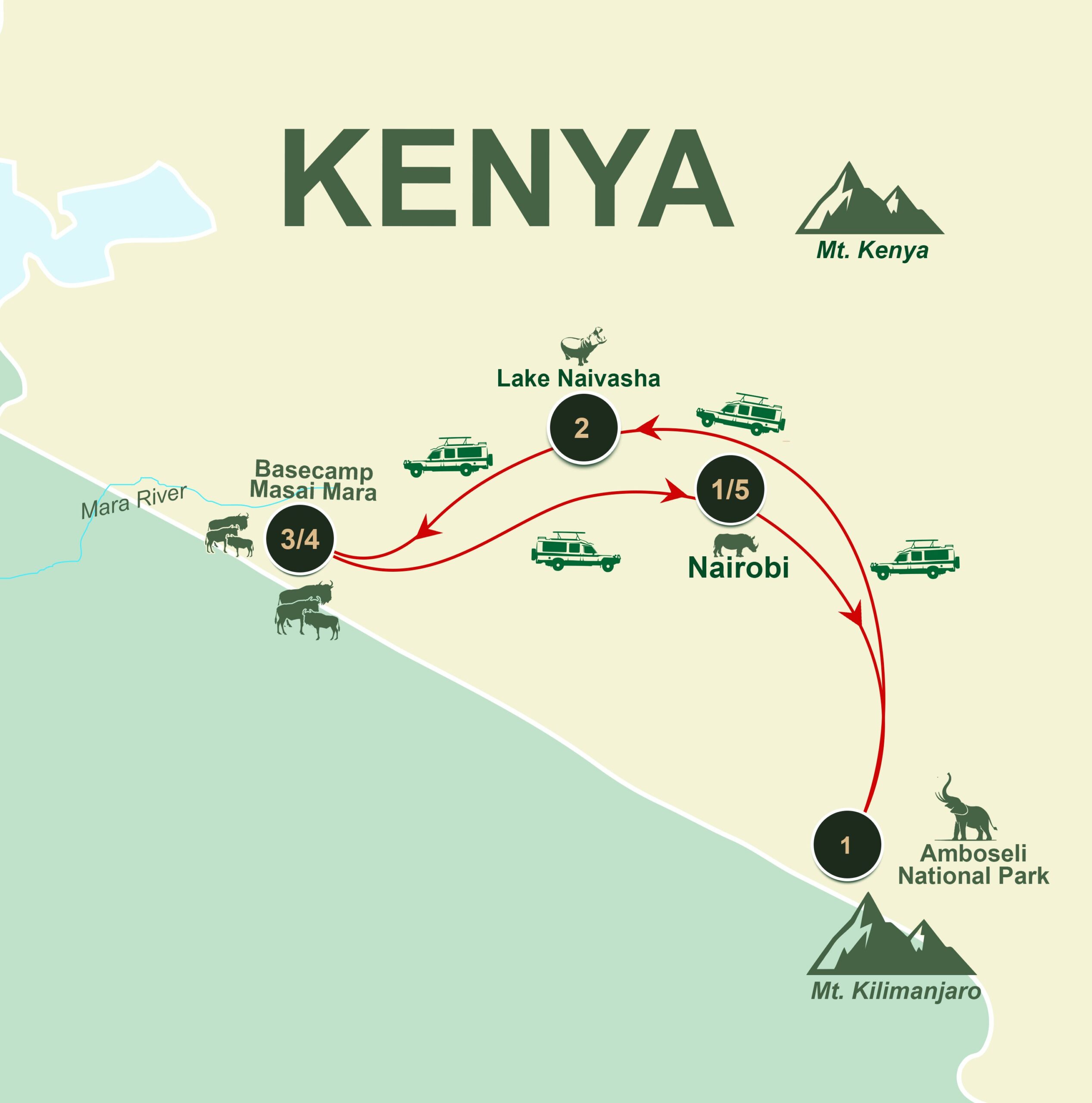 This well-curated five-day safari offers an exceptional opportunity to explore three of Kenya’s most iconic destinations—Amboseli, Lake Naivasha, and the Masai Mara—each offering unique wildlife and landscapes. Perfect for luxury travelers seeking both variety and depth, this itinerary is rich in experiences, scenic diversity, and high-end comfort.