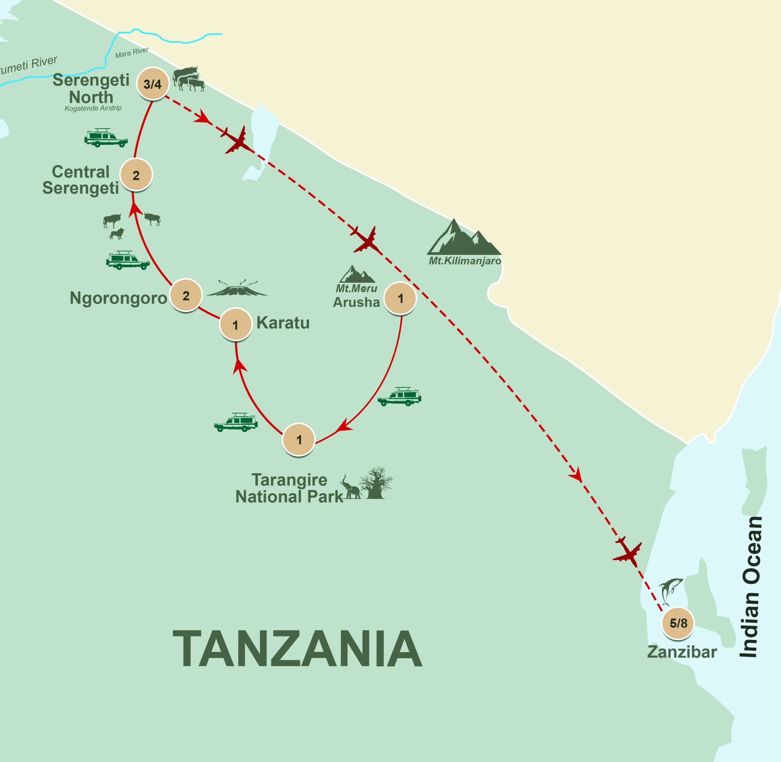 This curated 8-day itinerary combines the thrill of Tanzania’s legendary Northern Circuit with the serene beauty of Zanzibar’s coast. From the elephant-rich plains of Tarangire to the predator-packed Serengeti and the historic charm of Stone Town, your journey concludes with barefoot luxury on Nungwi’s white-sand beaches.
